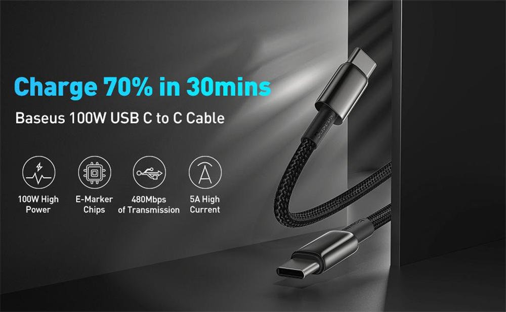 【Certified E-Marker Chip】Der zertifizierte Smart-Chip regelt den Strom und die Spannung und gewährleistet die sicherste 100W-Schnellladung. Sie können es verwenden, um jedes Gerät mit Vertrauen zu laden.