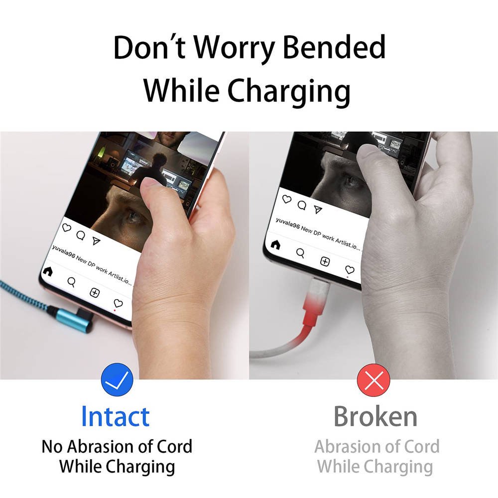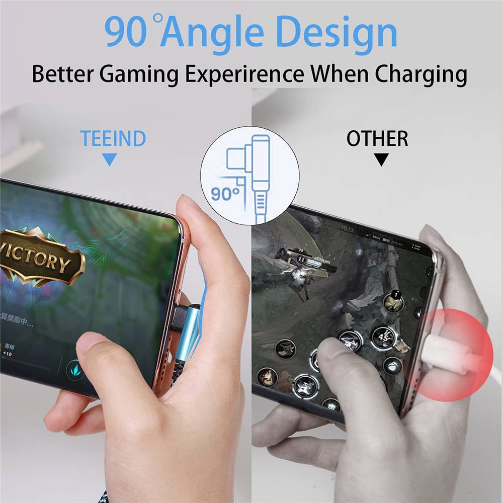 Das 90-Grad-USB-C-Kabel nimmt das innovative 90-Grad-L-Stecker-Design an. Das benutzerfreundliche Design ist bequemer und komfortabler für das Spielen von Spielen, das Ansehen von Videos und das Lesen von E-Books beim Aufladen.
