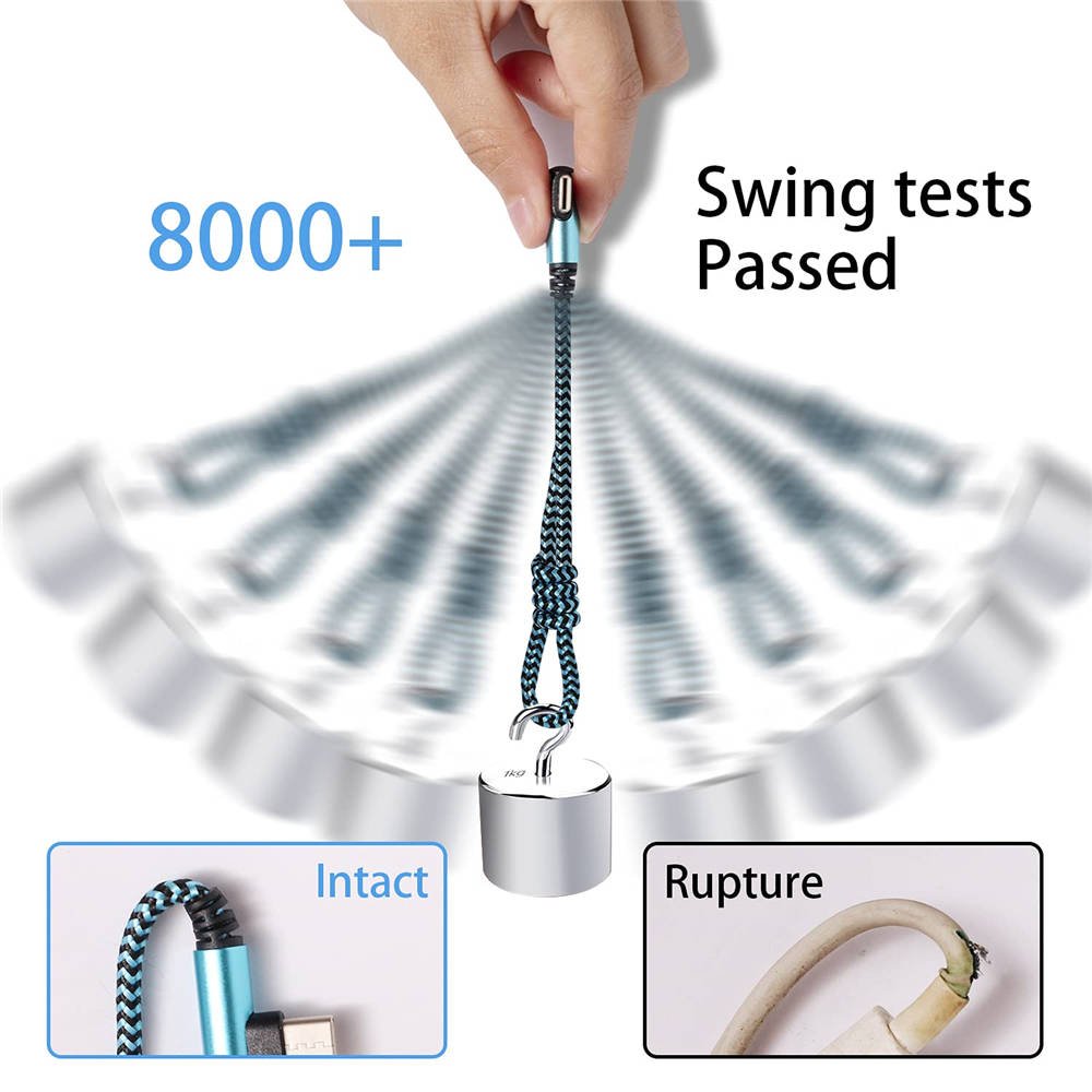 Starke Faser, das flexibelste, stärkste und haltbarste Material, macht die Zugkraft um 200% erhöht. Kann 8000+ Biegetest ertragen. Premium-Aluminium-Gehäuse macht das Kabel mehr haltbar, und die Nylon geflochtene C-Typ-Kabel erhöht die Haltbarkeit ohne Verheddern.