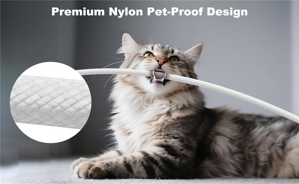TPE y nylon trenzado cubierta exterior con un excelente tacto, ligereza, estabilidad, durabilidad, longevidad, anti-envejecimiento, fuerte resistencia a la flexión y resistencia al impacto, la superficie lisa y de color brillante hacen que nuestro cable de carga de gama alta y exquisita sensación, también TPE con funciones anti-conductor y anti-estática, de alta retardancia a la llama, trenza gruesa resiste masticar mascotas