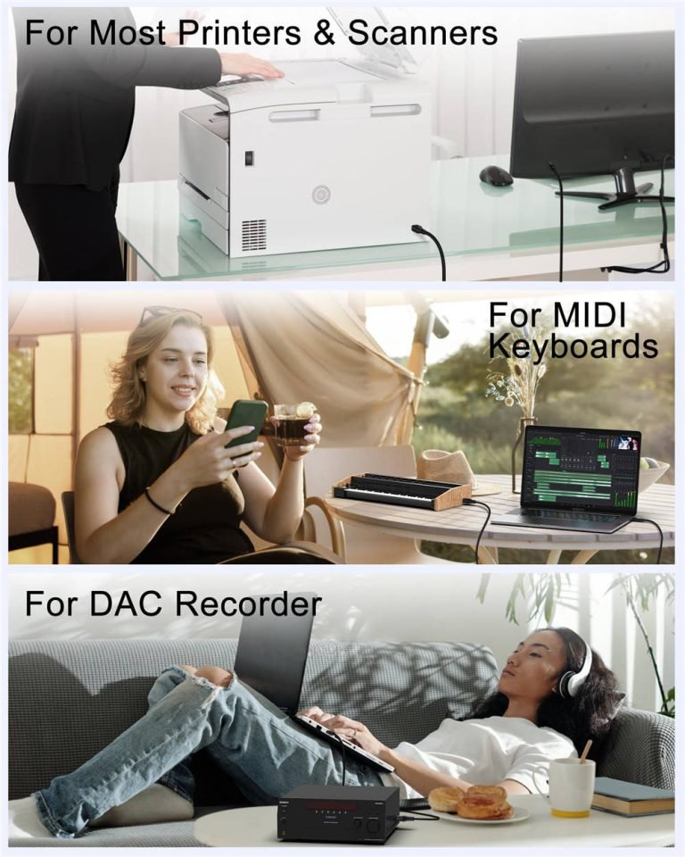 Compatible con HP, Canon, Epson, Dell, Brother, Lexmark, Xerox, Samsung y otros dispositivos como pianos, DAC, etc., para conectar a un portátil u ordenador (Mac/PC) u otros dispositivos con conexión USB.
