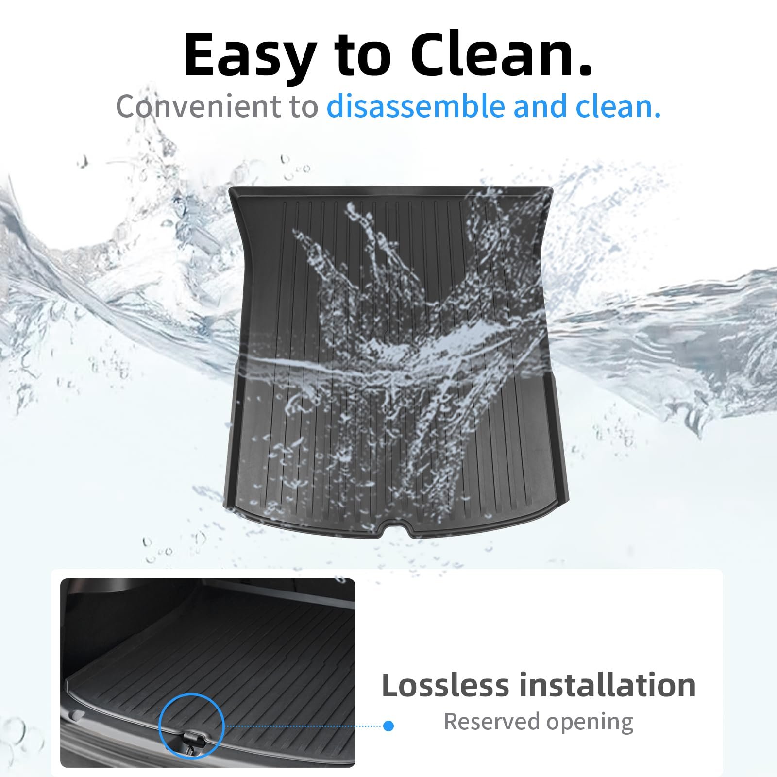 Piano key grain design: matching Tesla design aesthetics.The Cargo Liner features thoughtful design elements such as high edges and textured surface to provide extra protection from spills and wet items,and the cleats on the back can keep the mat firmly in place,non-slip.