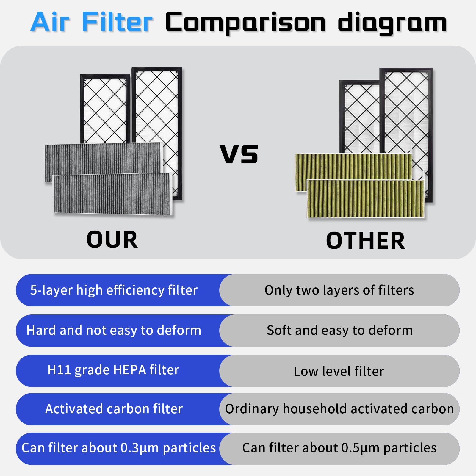 Applicable Models: HEPA Carbon Air Filter Kit Compatible with Model Y 2020 2021 2022 2023 2024 2025 2026+ Including Juniper series,and are manufactured with 1:1 original size to ensure seamless integration with the vehicle’s HVAC system,guaranteeing the best performance