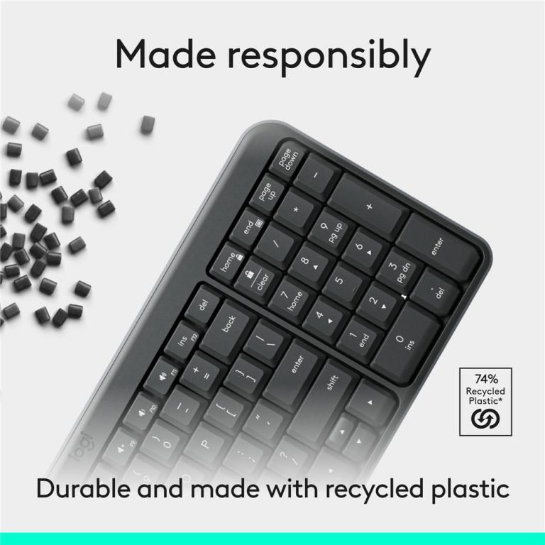 The ulifeneed K250 Bluetooth Keyboard features effortless Bluetooth® connectivity. It connects in seconds without the need for a dongle, freeing up USB ports and ensuring a clutter-free workspace. Built to last, the K250 has a spill-resistant (2) design for reliable performance, making it an ideal choice for a busy home. Enjoy fast, responsive, deep-profile keys that provide a familiar and consistent feel, and accurate keystrokes to help you stay focused and comfortable. Despite its compact size, the K250 includes a numpad and all essential function keys, providing full functionality in a space-saving design perfect for tight spaces or on-the-go use. K250 is made to last with plastic parts using minimum 64% recycled materials. (3) This keyboard underscores ulifeneed’s commitment to sustainability, offering a durable product.